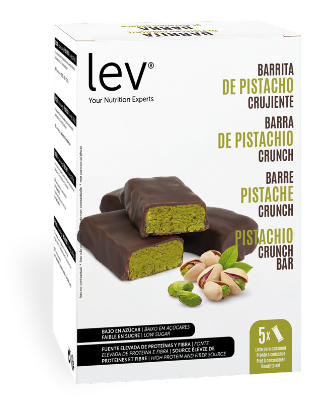 Fibras vegetais (polidextrose, fruto-oligossacáridos), chocolate de LEITE 18% [manteiga de cacau, proteína de LEITE, fibras vegetais (polidextrose, fruto-oligossacáridos), pasta de cacau, colagénio hidrolisado, LEITE em pó, emulsionante (lecitina de girassol), edulcorante (sucralose), antioxidante (α-tocoferol)], colagénio hidrolisado, gordura vegetal (óleo de palma, de karité, de colza), crocantes de soja 7% (proteína de soja isolada, amido de tapioca, sal), proteína do LEITE, proteína de SOJA, proteína de TRIGO, humectante (glicerina), pedaços de PISTACHIO 3%, aromas, sal, antioxidante (ácido ascórbico), corante (complexos de cobre de clorofilinas), edulcorantes (sucralose, acessulfame).
