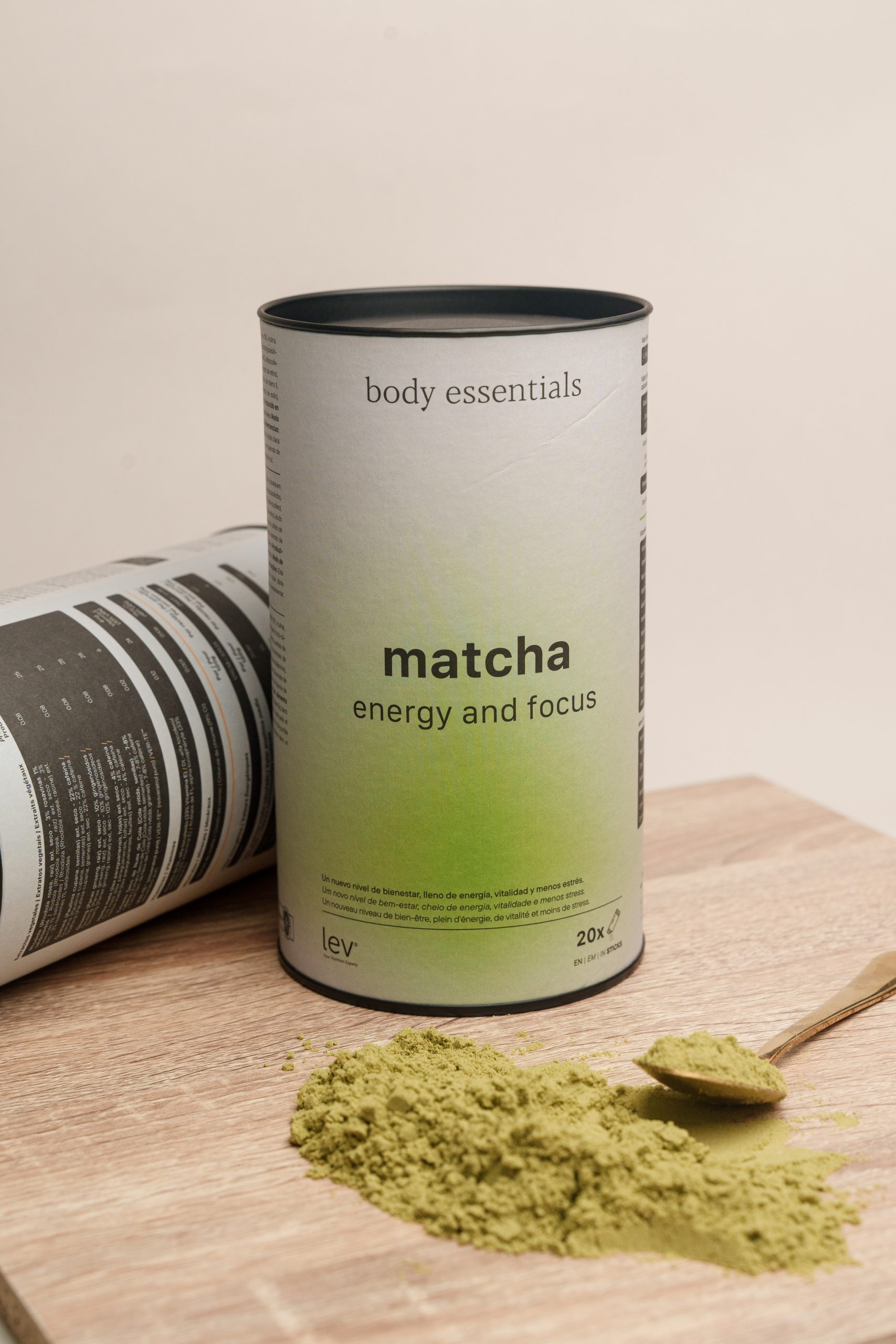 Maltodextrina, leite de coco em pó, proteína de ervilha, matcha em pó 10%, inulina, clorela em pó, extrato de feijão branco (Leguminosae Phaseolus vulgaris L.), goma de guar, fruto-oligossacáridos, espirulina, mistura de vitaminas (maltodextrina, ácido L-ascórbico, nicotinamida, acetato de DL-alfa-tocoferol, D-pantotenato de cálcio, cloridrato de piridoxina, riboflavina, mononitrato de tiamina, acetato de retinol, ácido pteroilmonoglutâmico, D-biotina, colecalciferol, cianocobalamina), mistura mineral (maltodextrina, sulfato de ferro II, sulfato de zinco mono-hidratado, manganês, gluconato de cobre, iodato de potássio, selenato de sódio), edulcorante (glicosídeos de esteviol), pó de rizoma de gengibre moído e cloreto de crómio.
